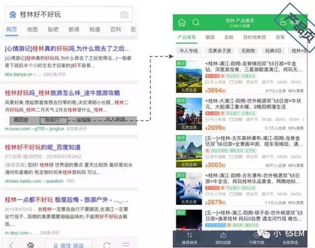 比如:我們在搜索“桂林好不好玩”,目前自然排名中的展現樣式是這樣的(右側是點(diǎn)擊進(jìn)來(lái)的頁(yè)面):