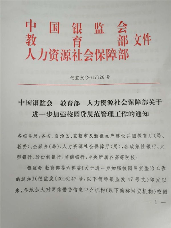 IT之家6月17日消息,近日,中國銀監會(huì )聯(lián)合教育部以及人力資源社會(huì )保障部發(fā)布了《關(guān)于進(jìn)一步加強校園貸規范管理工作的通知》(以下簡(jiǎn)稱(chēng)為《通知》)?!锻ㄖ贩Q(chēng),相關(guān)部門(mén)將進(jìn)一步加大校園貸的監管整治力度,從源頭上進(jìn)行整治亂象,防范和化解校園貸風(fēng)險,同時(shí)暫停網(wǎng)貸機構開(kāi)展校園貸業(yè)務(wù)。