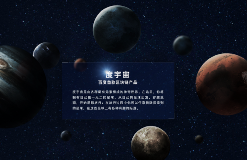 根據官方頁(yè)面介紹,度宇宙是由各種稀有元素組成的世界,元素不斷匯聚可成為星球,獲取元素越多星球質(zhì)量就越大,質(zhì)量越大引力越大,從而有能獲得更多的元素。當星球的質(zhì)量達到一定要求的時(shí)候,就會(huì )開(kāi)啟神秘功能。官方透露,度宇宙是百度旗下首款區塊鏈原生應用,致力于打造數字社會(huì ),成為數字公民概念的布道者和實(shí)踐者。